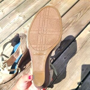 Beige and Gold Eyelet Lace-up Wedge Heels - Vintage Y2K