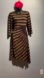 Very unique and elegant black and shimmering gold striped asymmetrical dress. Beautiful ruching detail. Super flattering fit.