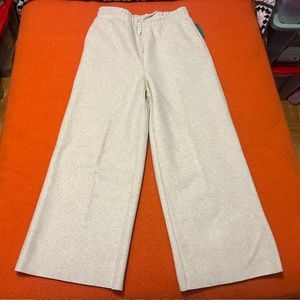 Beige cream felt wool blend high waist wide leg pants NWT