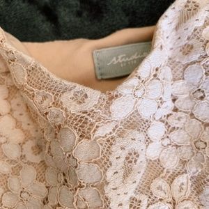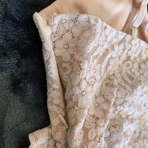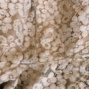 Cute little beige lace top! flare out on the bottom. There is a mini hole on front (reflected in price) in the last photo! Always open to offers.