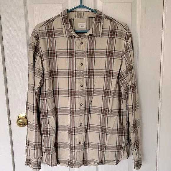 Mens Beige plaid, US 17.5 in size, fits like a large, perfect condition. Brand is selected homme