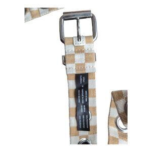 Buckle up for a ride right into 2000 with this millennium-inspired grommet belt. Made of canvas in a checkerboard print, complete with metal grommets throughout the band and a square buckle.