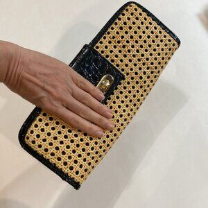 Trending, stylish, Beige woven rattan design clutch bag 11x5, popular, cool, blogger style, feminine, mob wife trend, date, sale, classic, weekend, comfortable, soft, comfy, designer, east west bag, luxury, chic, classy, sophisticated, Office, professional, work, boss, workwear, holiday, party, evening, cocktail, wedding guest, formal, event, elegant, prom, Classicore, quiet luxury, minimalist,