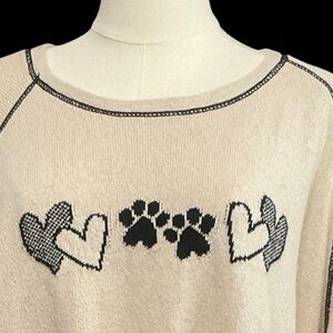 Beige/Black Knit Sweater w/ Paw Print Graphic