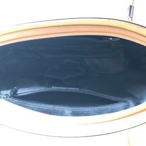 Zip top closure and four hardware feet. Inside has 2 handy zip pockets and a small slip pocket.