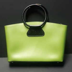 Good shape pre-owned condition. Has some material peeled off the handle straps and there is some scuffing on the rubber outside. Doesn't have a shoulder strap but does have the loops. Clean inside.