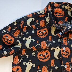 Beistle Creepy Co Shirt Halloween Ghost Pumpkin Tombstone Skull rare Mens XS