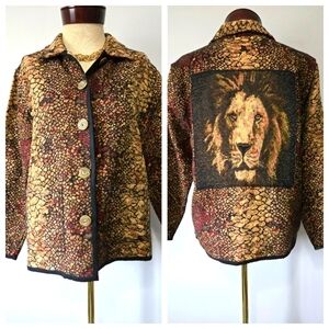 Belessa Lion Print Button-Up Jacket. Size Medium