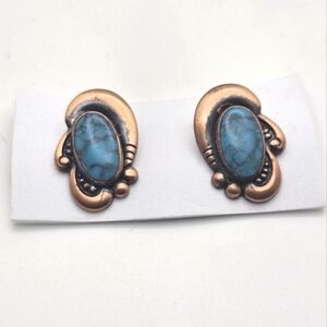 Bell Trading Post Vintage Copper Turquoise Clip on Earrings