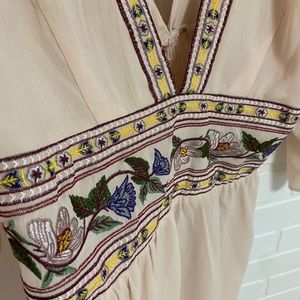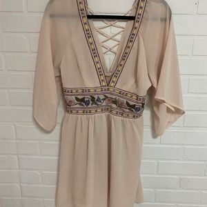 Light and flowy. A bit sheer on the top, looks really cute on.