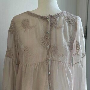 Bella Amore Italy Dusty Rose Sheer Silk-Blend Gauze Embroidered Blouse – EU L