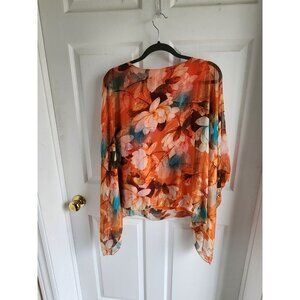 Bella Amore Ladies 100% Silk Bluse Made in Italy Orange Floral Print Lined O/S