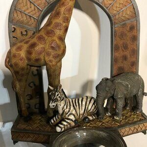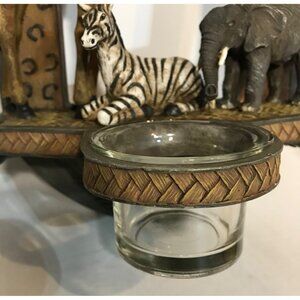 Enhance decor with this hand-painted African safari animal tealight candle holder. Exquisite detailing of giraffe, elephant, and zebra figures.