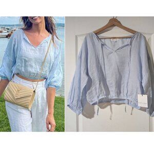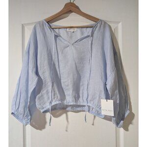 Bella Dahl | Linen Tie Neck Top In Blue
