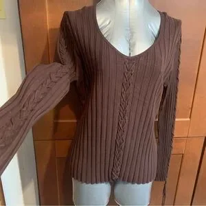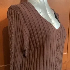 Elegant chocolate ribbed knit top. Ideal for layering.