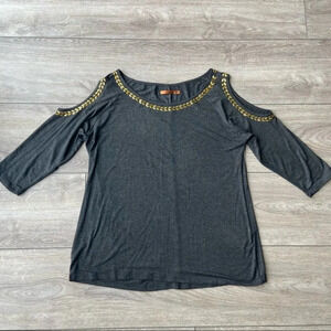 Belldini Gold Neckline Accents Cold Shoulder Tunic Blouse