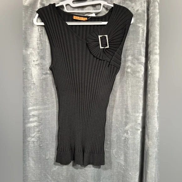 Belldini stretchy black sleeveless top with rhinestone buckle detail, size 2X. Ptp 22” T105