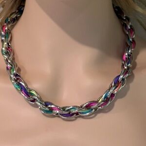 #BelleMiss #StatementNecklace #ColorfulJewelry #RibbonWoven #SilverTone #ChunkyNecklace #FashionJewelry #BohoChic