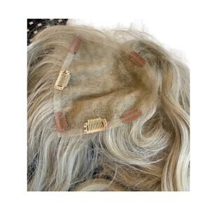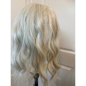Stunning Belle Tress Marshmallow 18" Topper - the perfect addition to your hair collection. This lovely topper features luscious waves and is heat-friendly, allowing you to customize your look with ease. The super light Bombshelly Marshmallow Blonde shade is a beautiful blend of platinum, pure, and satin blonde with marshmallow highlights, giving you a natural and dynamic look. Say goodbye to dark roots with this top-quality topper that will seamlessly blend in with your natural hair. Elevate your style and boost your confidence with the Belle Tress Marshmallow 18" Topper - the perfect choice for anyone in search of a gorgeous synthetic hair topper. Never worn - too light. I did sew in two clips (see wig cap pic) for extra sturdiness. *Last picture was taken outside for color comparison. It was getting VERY windy when I took her picture! I got her inside before it rained.* Please note that this is NOT a full wig.