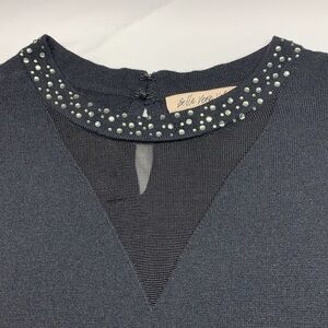 Belle Vere Notte Long Sleeve Bejeweled Crew Neck Wool Blend Dress Black Medium