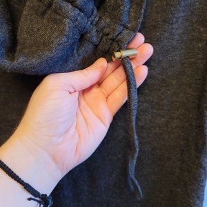 Size Small. Listed here is a grey, long sleeve, cowl neck tunic. It features gold rivets on the cuffs and a gold toggle drawstring to adjust the large cowl. This is a great, cozy piece that can be styled both professionally and casually! โ๏ธโ๐๏ธ