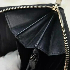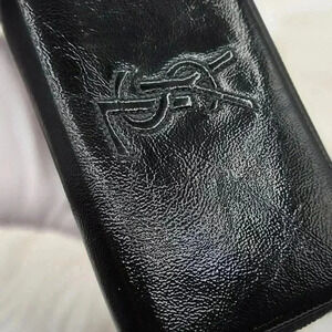 A chic accessory crafted from leather with a glossy patent finish. It features a zip-around closure, ensuring that your essentials are secure, and includes an interior slip pocket for easy organization. This stylish wallet is perfect for keeping your cards and cash organized while adding a touch of elegance to any ensemble