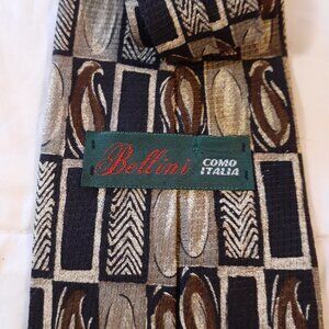 Pre-owned, good condition. Bellini Como Italia, men's silk tie. Beige, brown, black, abstract paisley pattern. Tie is 3.75 inches in width.