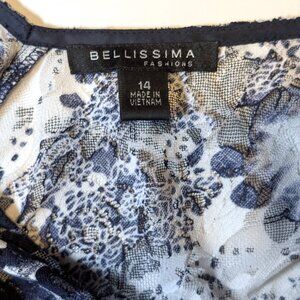 This delicate floral Navy and White dress has a back zipper and optional Navy grosgrain ribbon belt. The dress is by Bellisima Fashions. The lining is fully separate, just joined at the shoulder.