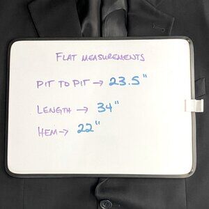 Great used condition. No holes or stains. No pilling or pulls. No size tag, size 46L chosen based on measurements below and compared to the other blazers this person wears.