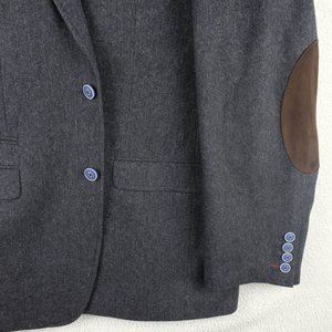Bellissimo Blazer mens 46R Blue Herringbone Tweed Elbow Pads Two Button Vented
