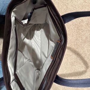 Made of easily wipe able material and shoulder straps with padding to keep on shoulder.
