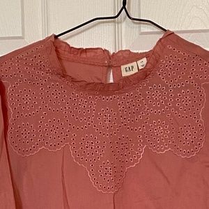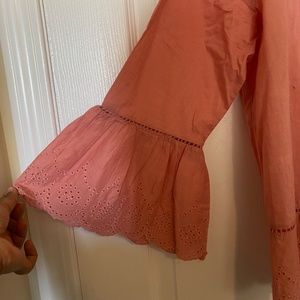 High neck bell sleeve blouse in light cotton material. Beautiful eyelet details as shown. In perfect condition from a smoke-free, pet-free home.