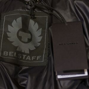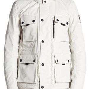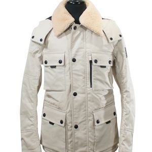 Belstaff Montfield Shearling Trim Multi-Pocket Coat in Mist Beige
