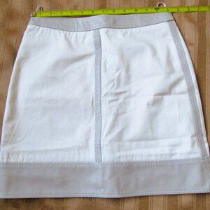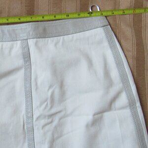 Belstaff Pencil Skirt, Leather Trim, Beige/white, sz.S, waist 26in, lined, cotton blend;