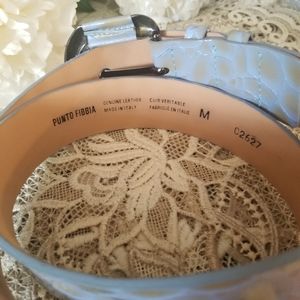 Light bleu snake pattern Punto Fabbia genuine leather belt made in italy.