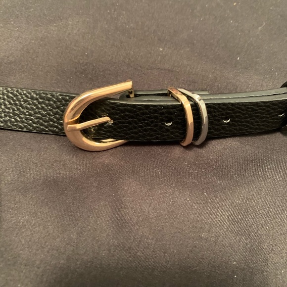 Thin black belt with gold and silver detailing.