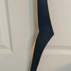 Ladies navy blue bonded textured leather belt. Asymmetric style. Silver buckle.