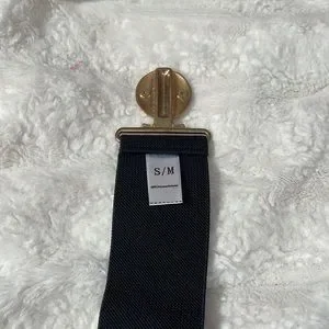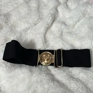 Stretchy belt has gold tone hardware. Adjustable