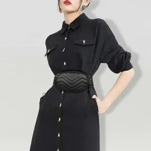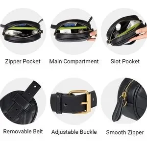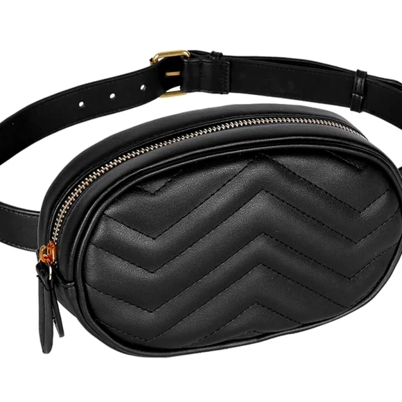 Fanny Packs for Women Fashionable, Black Faux Leather Waist Bags Belt Bag Stylish Bumbag for Party, Travel, Gift, 1-Black