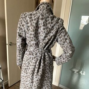 3/4 Length spring/fall belted coat in a fuzzy grey with brown leopard print material