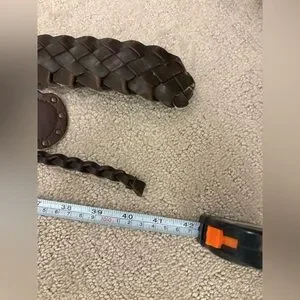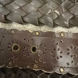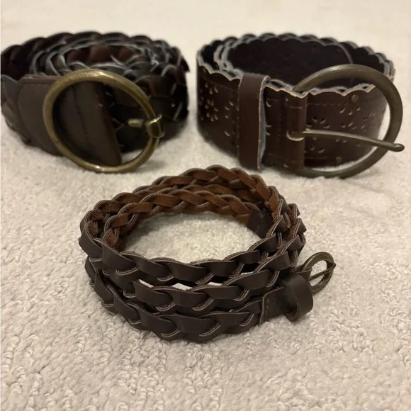 Set of 3 brown synthetic leather belts. Some signs of wear as pictured.