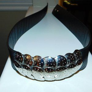@poshkscloset Hi poshks. These are not leather. The silver one, the smallest waist is 28" and goes to 30". The bow is stretchy so the max is 33". Hope that helps.