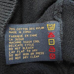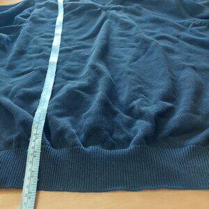This previously owned sweater is in great used condition, and features a High V-neck so it can be worn on its own, and embroidered logo on back between shoulder blades. Sweater is thicker and made of good quality. Please note there is a slight fabric flaw as shown in last photo, does not effect the look or wear of the item.