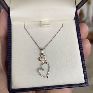 Ben Moss 10K White & Rose Gold & Diamonds Two Hearts Necklace Minimalist