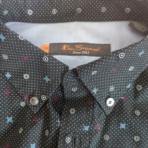 Ben Sherman Black Geometric Print Long Sleeve Button Down Shirt