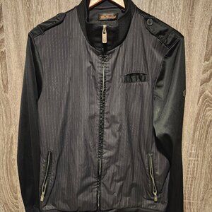 Ben Sherman M/L Harrington Jacket, Black Pinstripe pattern on front Military style shoulder detail used condition
