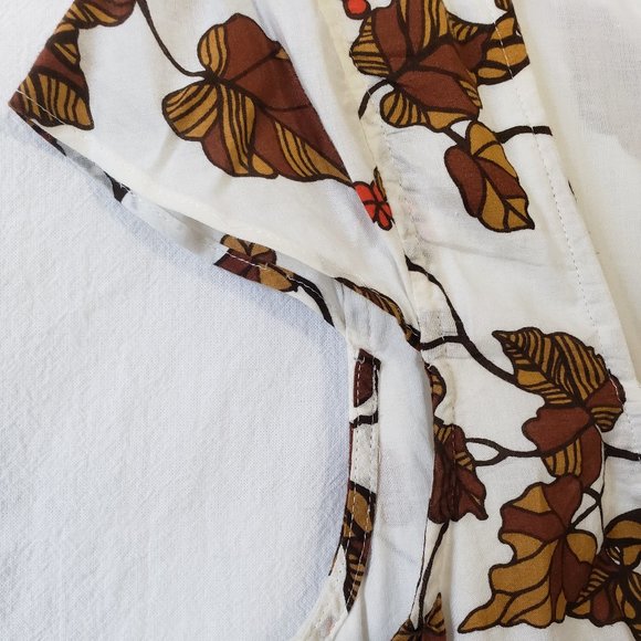 Ben Sherman Multicolour Cream Brown Orange Nature Print Queen Anne Neckline Short Cap Sleeves Cotton Shift Above-Knee Dress M Medium Mod