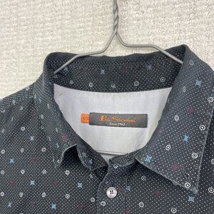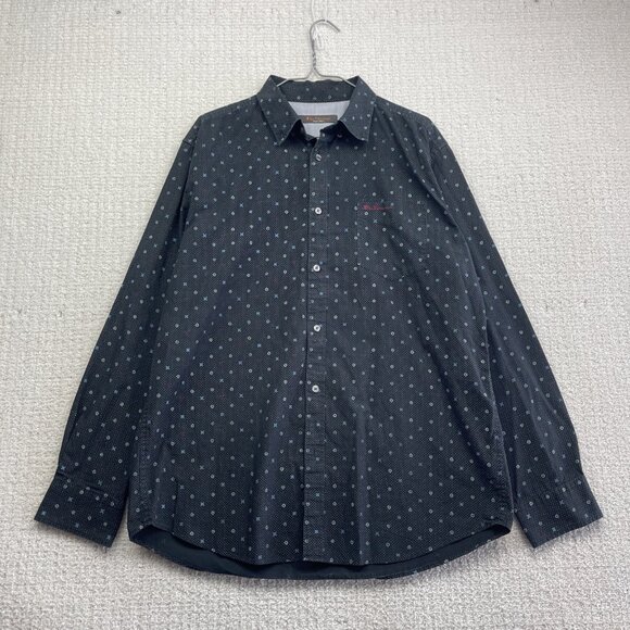 Ben Sherman Shirt Mens XL Dark Blue Geometric AOP Dots Button Down Slim Fit