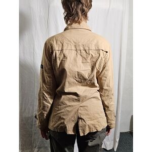 A workwear-style jacket in a cotton fabric, this jacket features a concealed front zip closure, two external pockets, and one internal pocket.