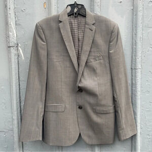 A super slim fitting suit with clean lines. This pure new wool, smoked pearl twill, features a two button fastening and slim notch lapels. The internals are sophisticated, featuring Ben Sherman's trademark house gingham.